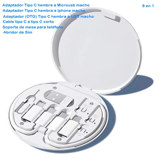 ADAPTADORES 6 EN 1 +OTG CAJA +SOPORTE DE MESA